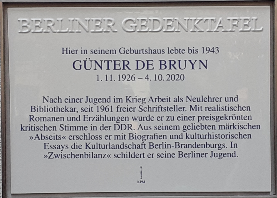Die Senatsverwaltung für Kultur und Gesellschaftlichen Zusammenhalt in Verbindung mit dem Aktiven Museum Faschismus und Widerstand in Berlin e.V. lädt Sie ein zur Enthüllung einer »Berliner Gedenktafel« für den Schriftsteller Günter de Bruyn.