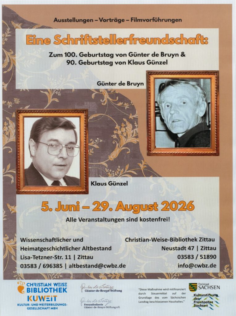 Eine Schriftstellerfreundschaft: Zum 100. Geburtstag von Günter de Bruyn und zum 90. von Klaus Günzel